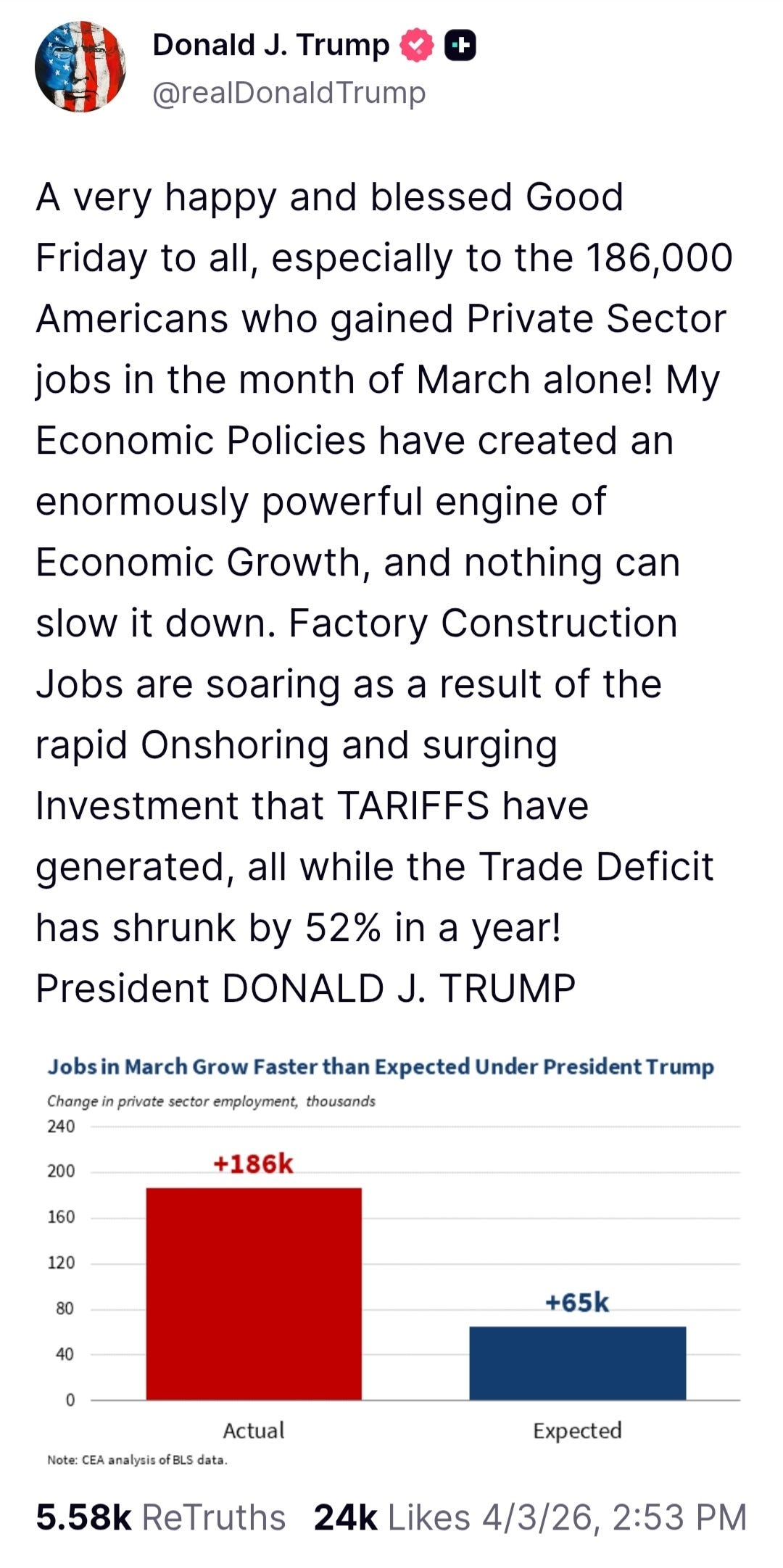 Sure, the trade deficit has shrunk because no one wants to do business with us anymore. The tariffs have cut off trade. It's nothing to be happy about. There's more to the story of the jobs report than just the numbers.